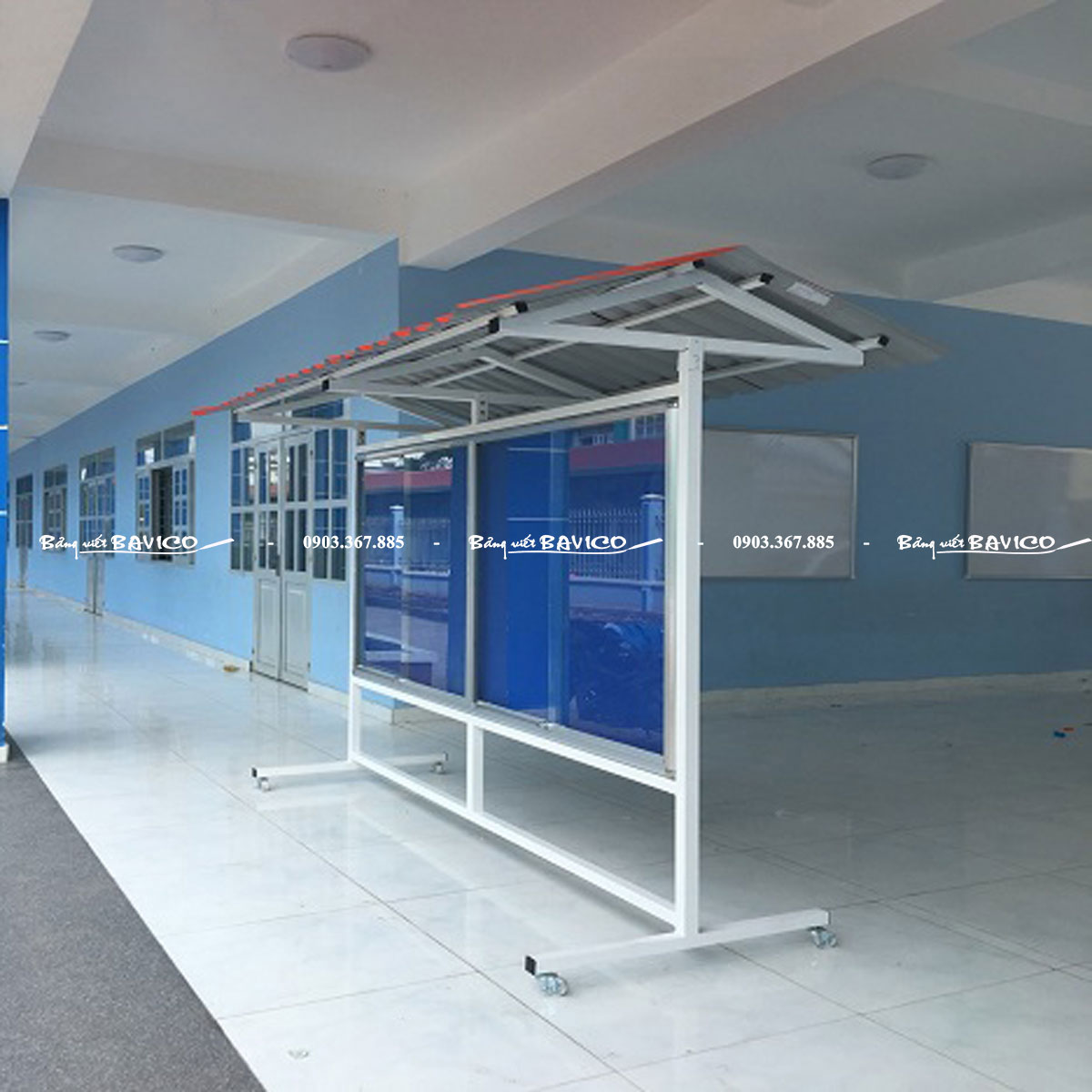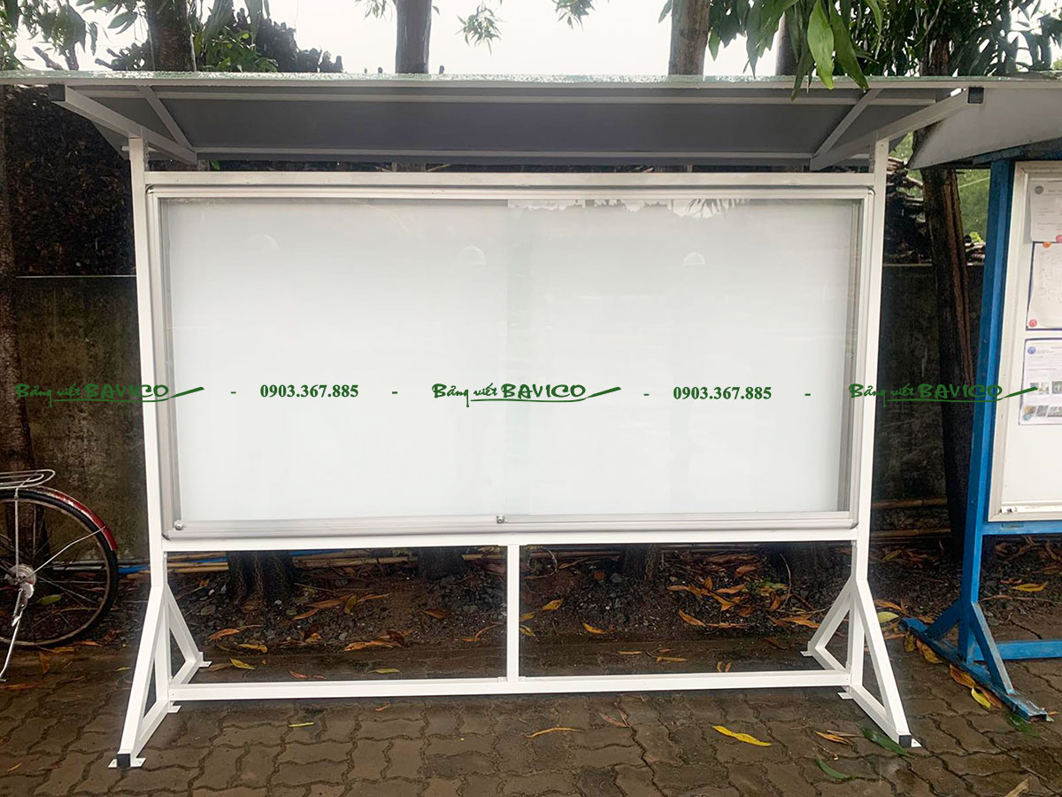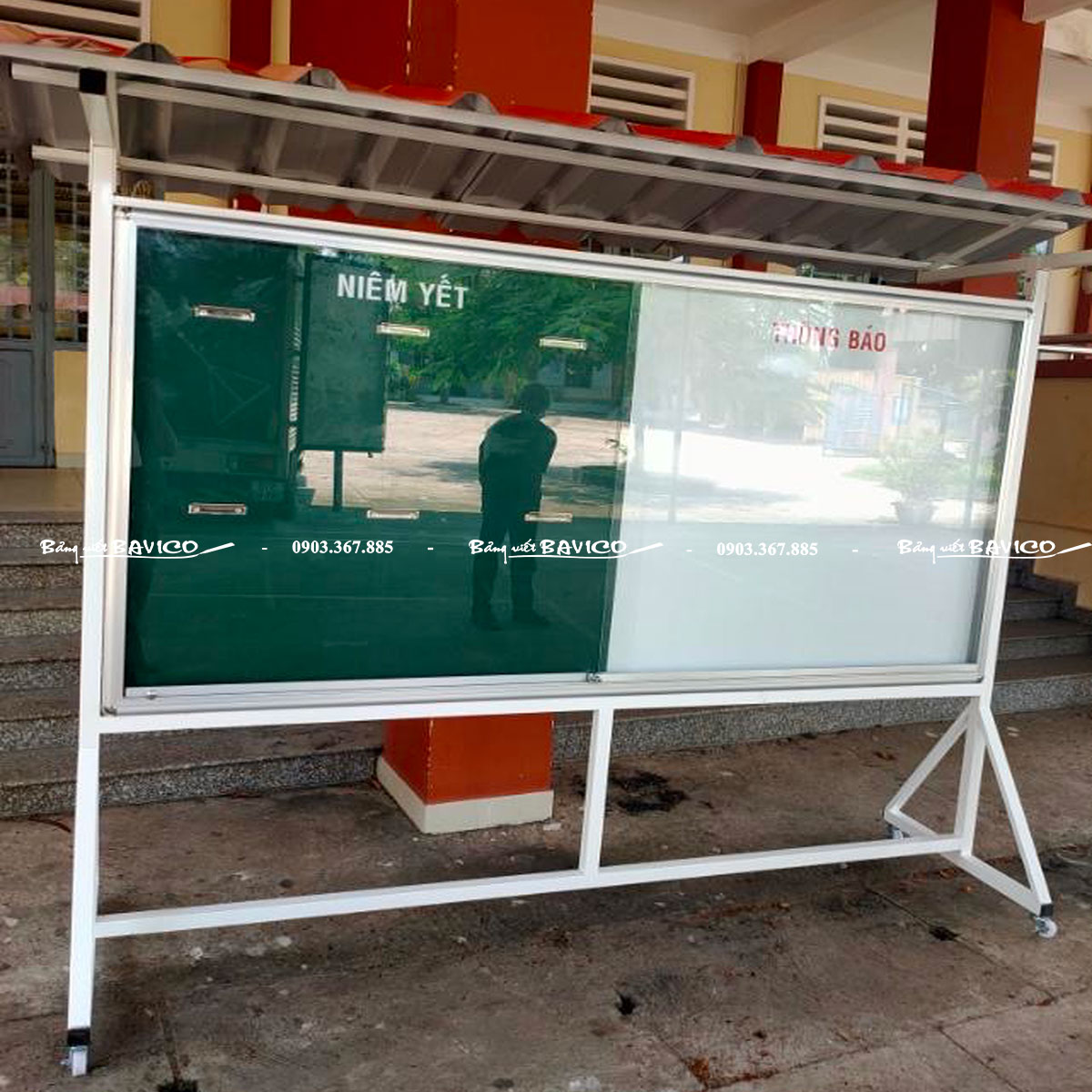 Bảng thông báo di động thường đặt ngoài hành lang để thông báo nội dung thông tin trên mặt bảng và khóa lại khi không sử dụng.