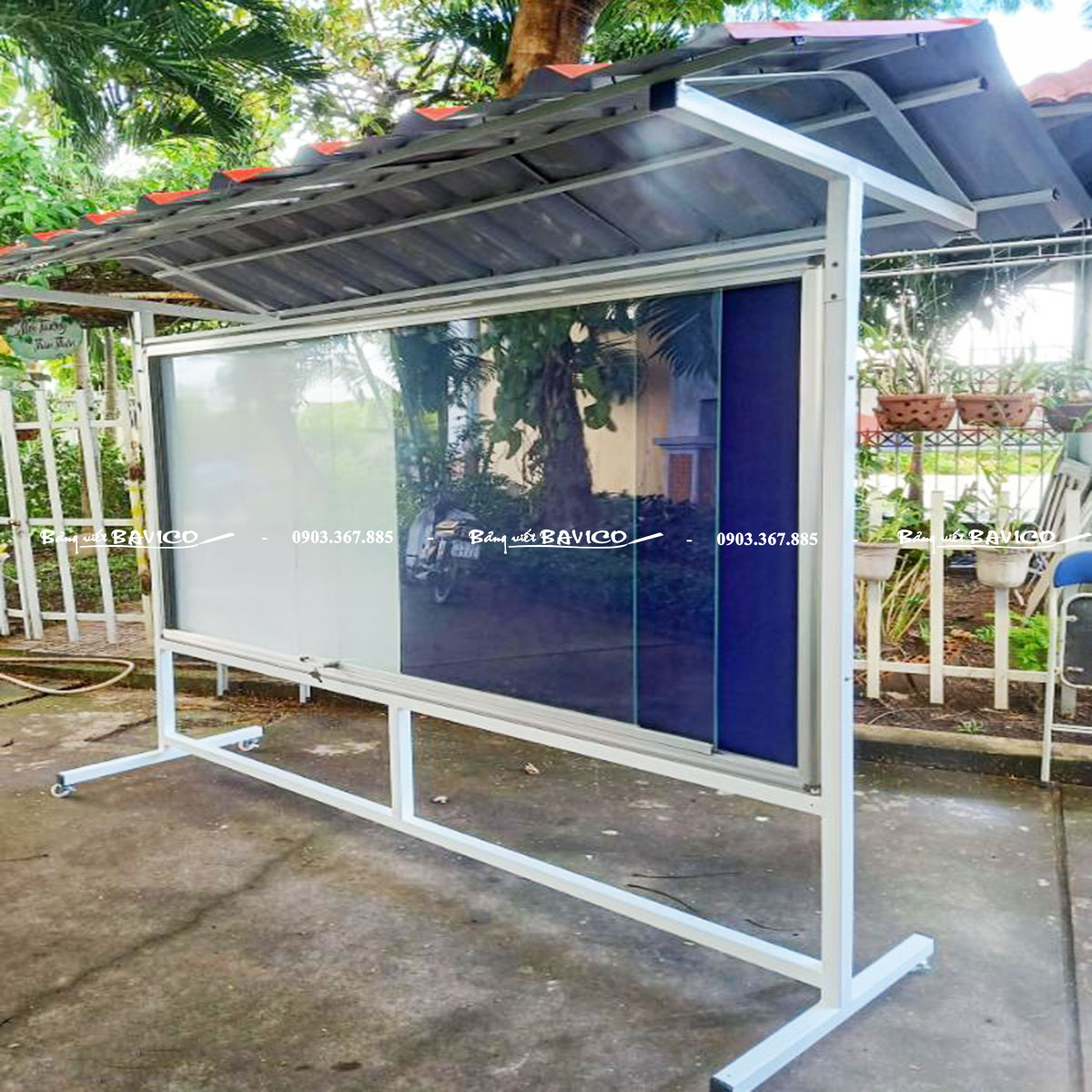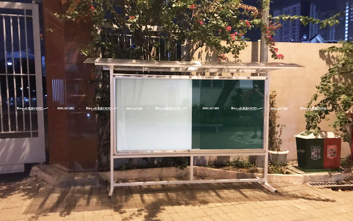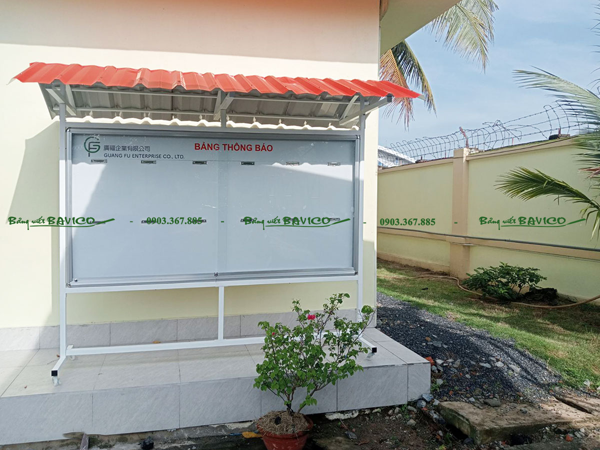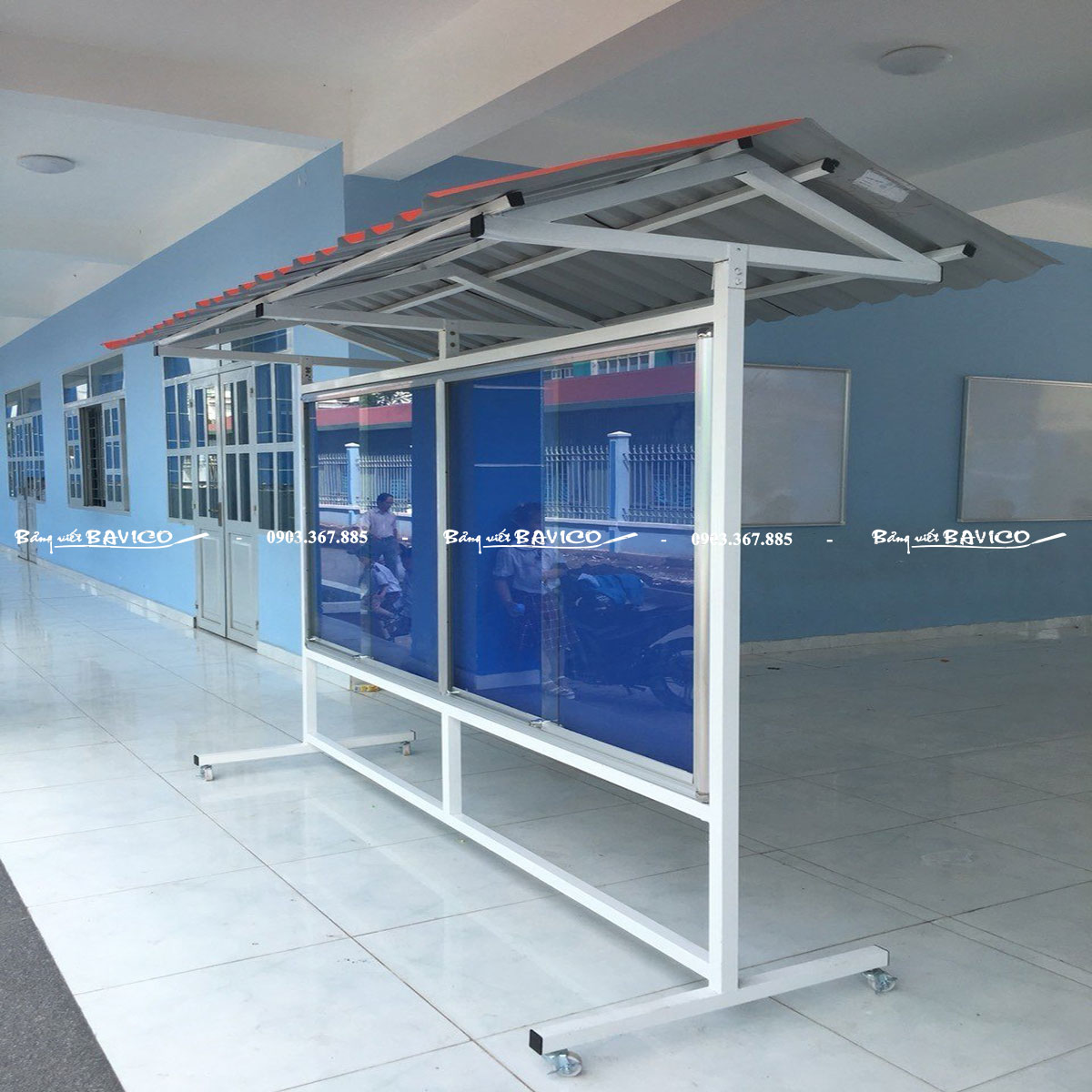 Bảng thông báo di động thường đặt ngoài hành lang để thông báo nội dung thông tin trên mặt bảng và khóa lại khi không sử dụng.