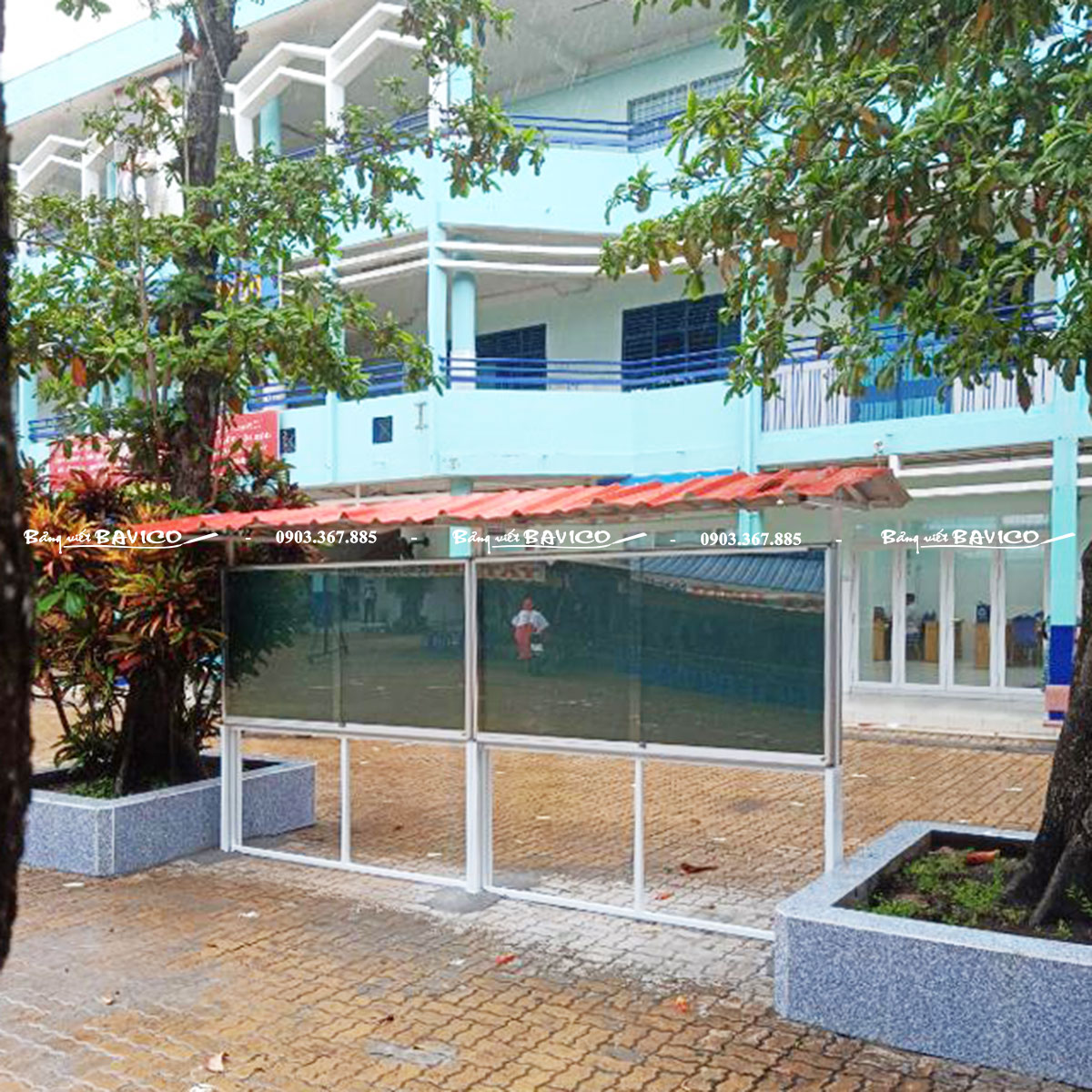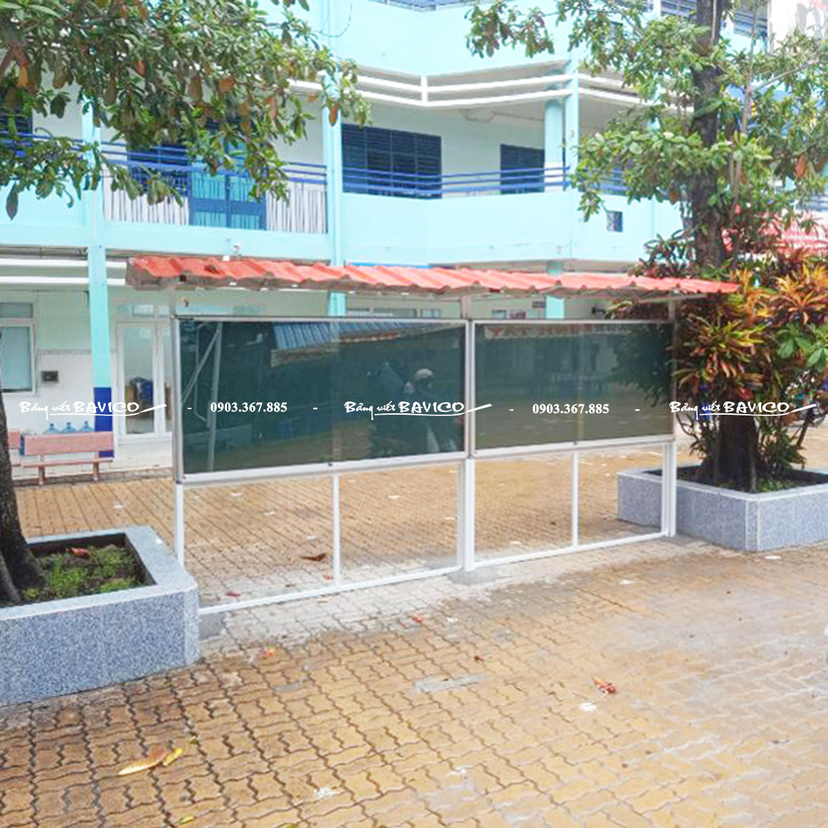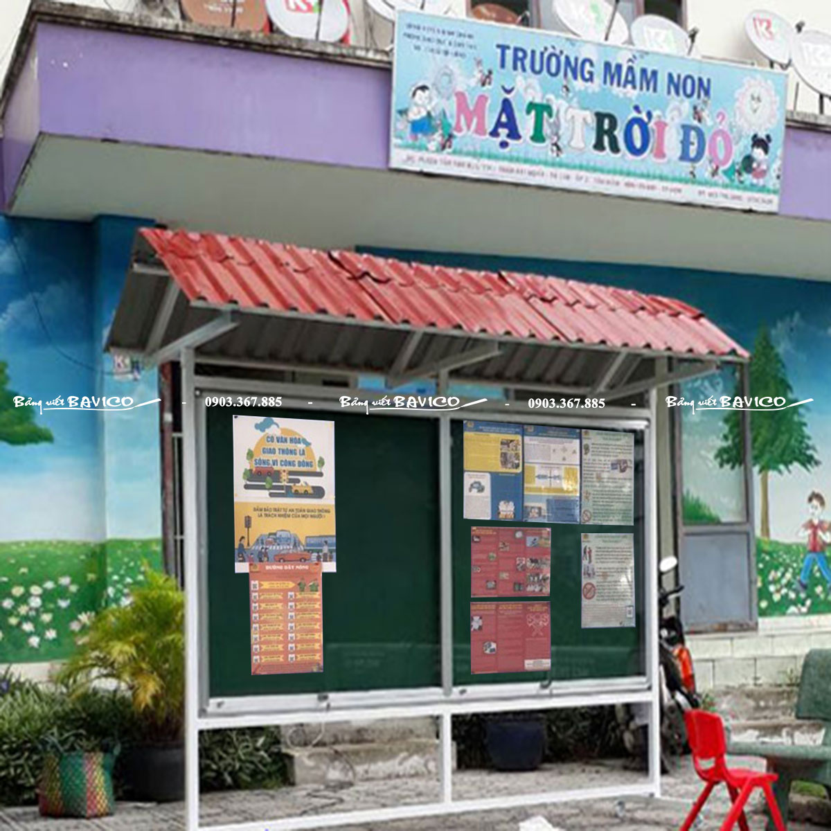 Bảng thông tin ngoài trời có mái che tại Trường Mầm Non Mặt Trời Đỏ được lắp đặt bởi bangvietbavico.edu.vn. Bảng được thiết kế đẹp mắt, có tính thẫm mỹ cao.