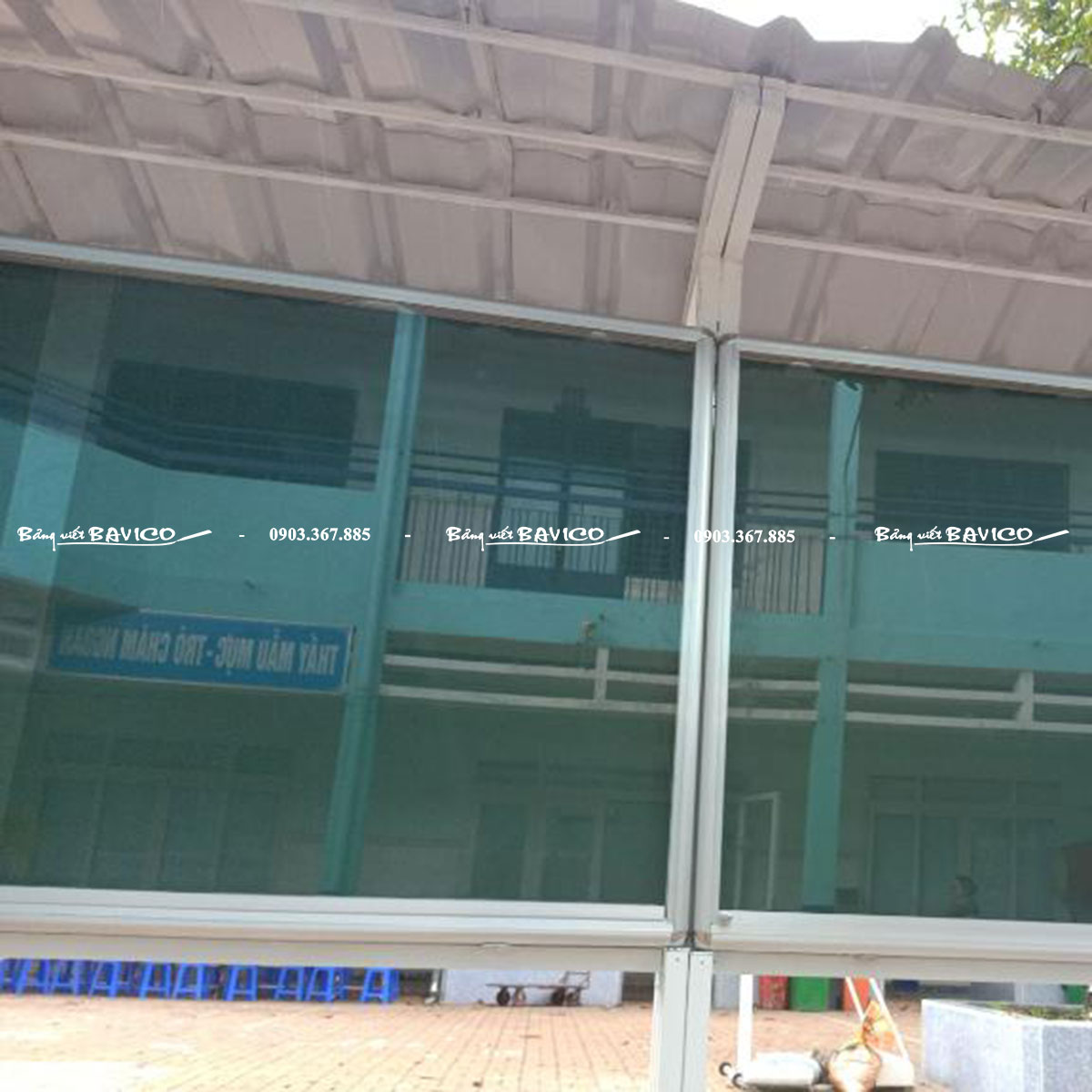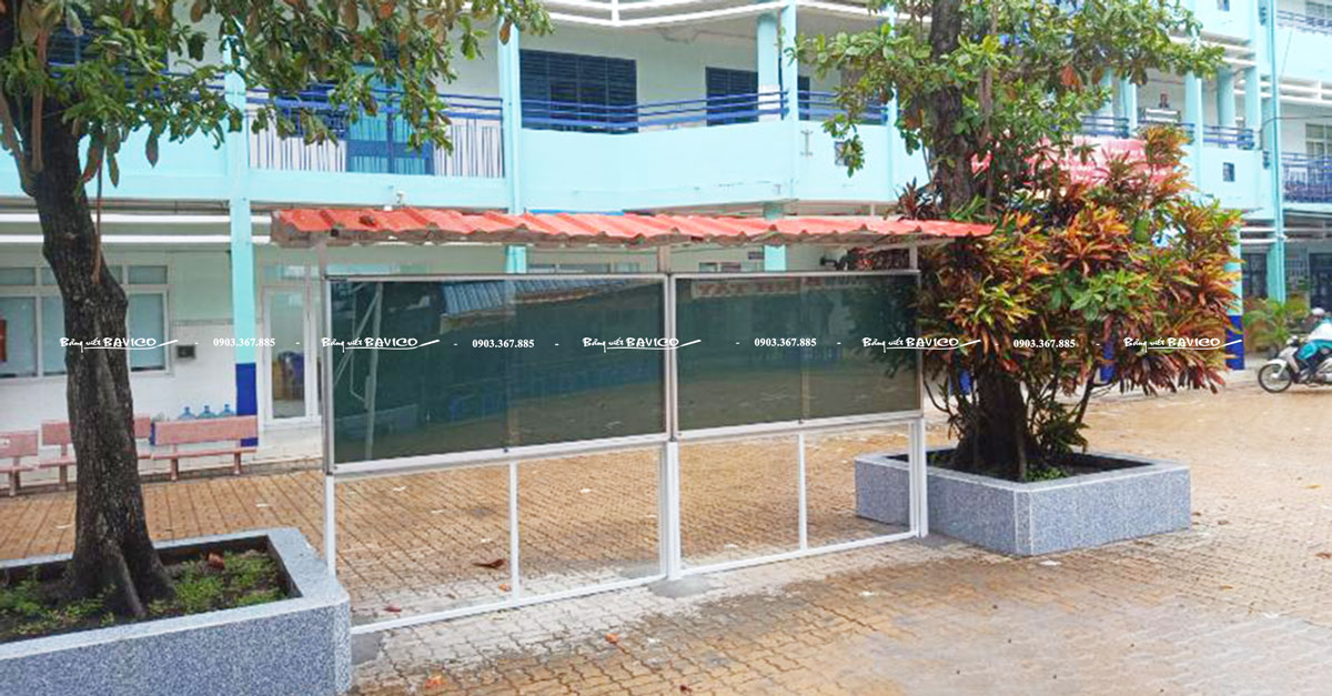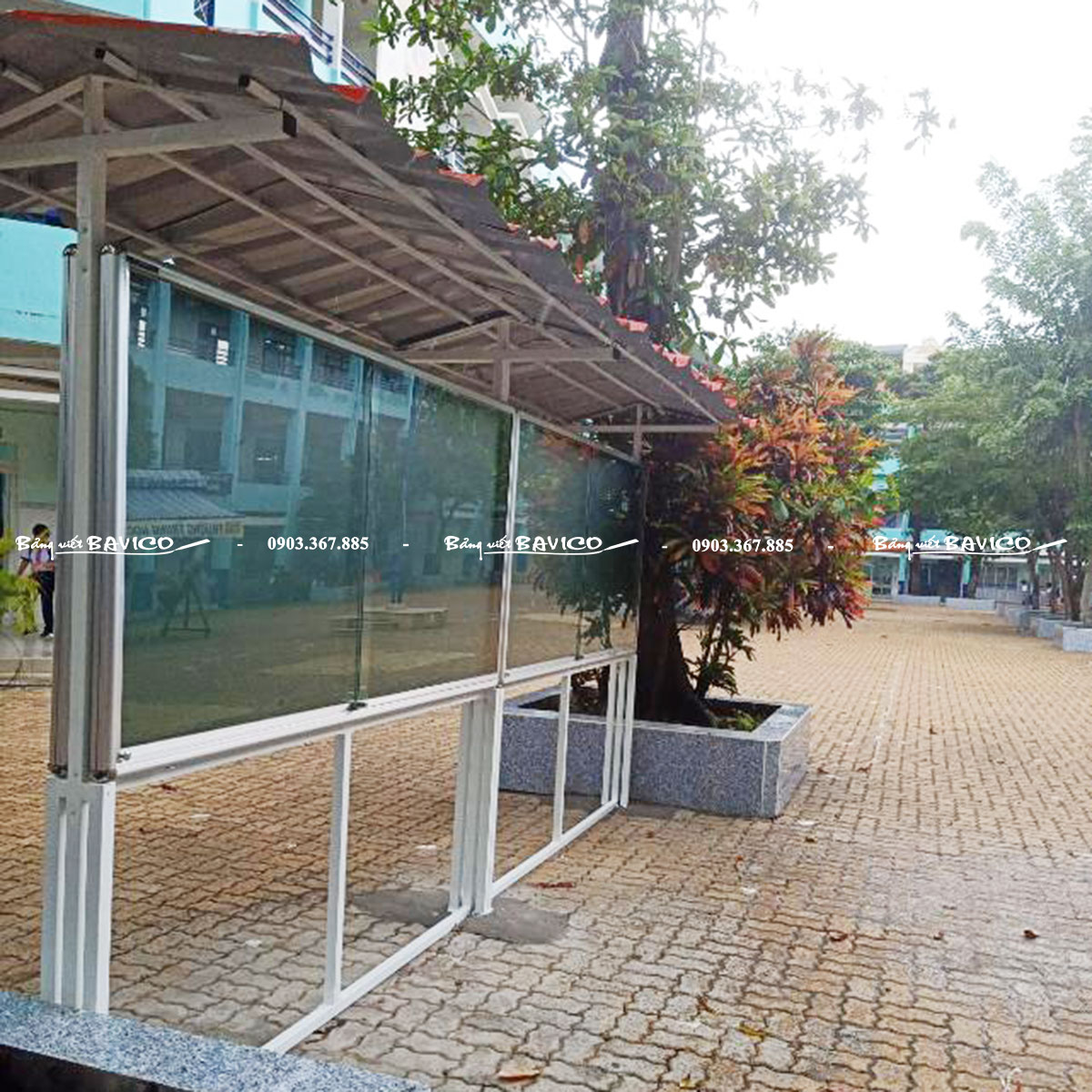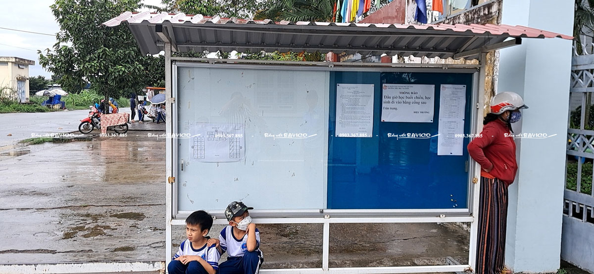 Bảng thông tin ngoài trời có mái che tại Trường Mầm Non Mặt Trời Đỏ được lắp đặt bởi bangvietbavico.edu.vn. Bảng được thiết kế đẹp mắt, có tính thẫm mỹ cao.