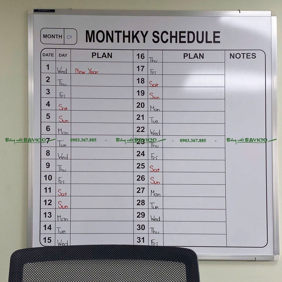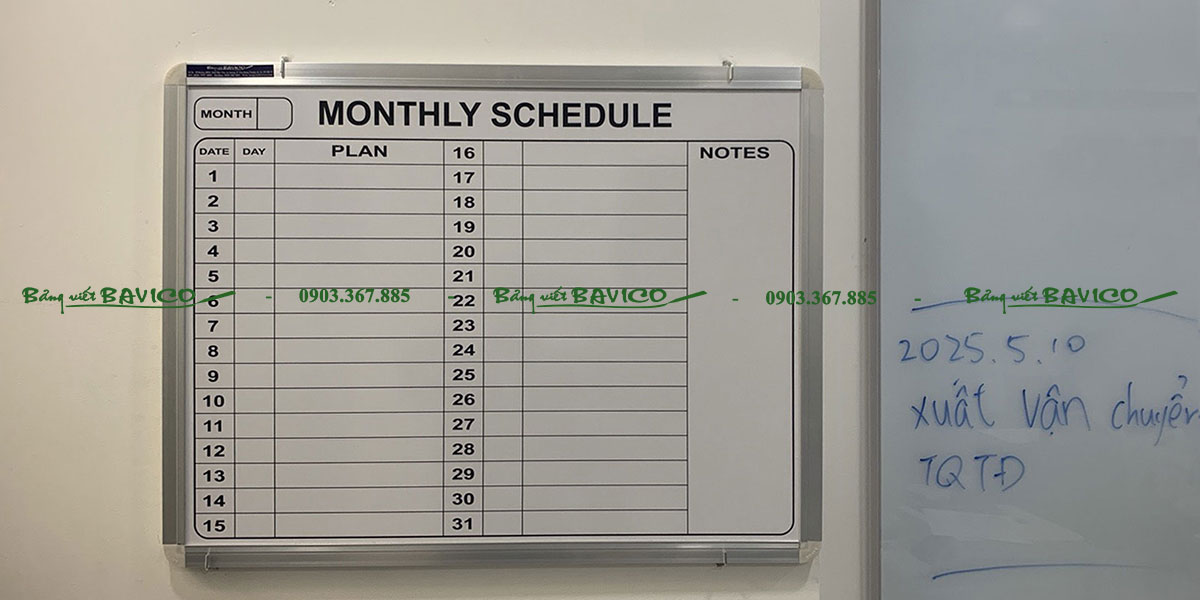 BẢNG TRẮNG DÁN DECAL THEO YÊU CẦU là bảng trắng có mặt bảng được phủ decal in nội dung theo đặt hàng của khách: Lịch công tác tháng; Lịch trực bảo vệ; Bảng thông báo; Theo dõi tiến độ; KPI – kế hoạch công việc; Biểu mẫu doanh nghiệp; ….