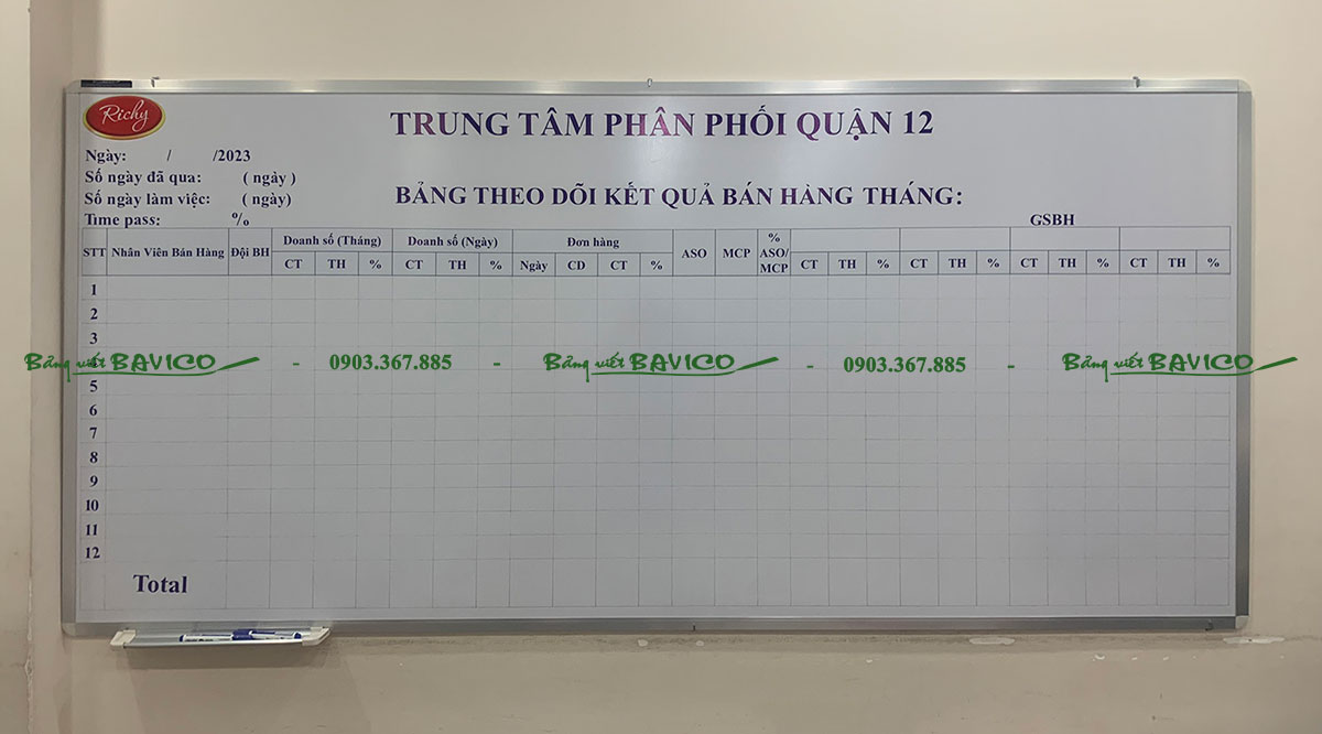 Nội dung decal được dán trình bày sẵn trên bảng, giúp quản lý thông tin chính xác, nhanh chóng và chuyên nghiệp.