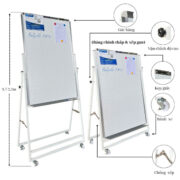 Bảng từ trắng có chân flipchart f3 – Hàn Quốc chân sắt có các kích thước chuẩn: 100 x 60 cm ; 120 x 80 cm; 120 x 100 cm; 120 x 120 cm; 120 x 140 cm; 120 x 160 cm; 120 x 180 cm.